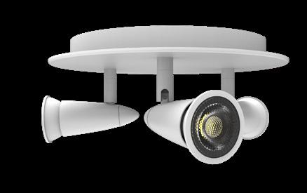 Takarmatur i aluminium med 3 st 10W spotar. Riktbar 350° och vinklingsbar 90°. LED-chipet är placerat högt upp i armaturen för att motverka bländning. Dimbar med fram-/bakkantsdimmer. Enkel installation tack vare bygel med snabbclips samt vajer som går att fästa i armaturen för att underlätta installation. Lämplig För tak i kök, badrum, hall eller som accent belysning. Finns även i svart.