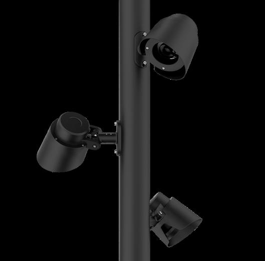 Stolparmatur med ställbart vinkelfäste. Tillverkad i pressgjuten aluminium. Bestyckad LED och linser för gatuoptik. Anpassade för gång- och cykelvägar med längre stolpavstånd.