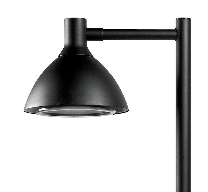 Finns i tre olika storlekar. FArmaturen är försedd yttre skärm minimera risk för bländning. Armaturen monteras direkt på stolpe. Kabel är dolt förlagd genom armaturens fot och in i stolpen. Färgfilter finns som tillbehör.