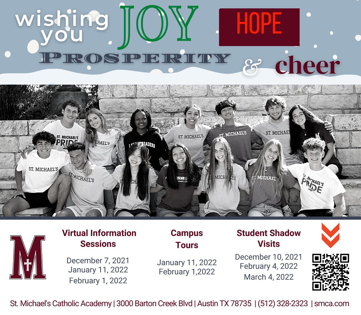 St. Michael’s Catholic Academy wishes West Austin News readers and our own extended community much joy this extraspecial holiday season with all the love and warmth of the spirit of the season.