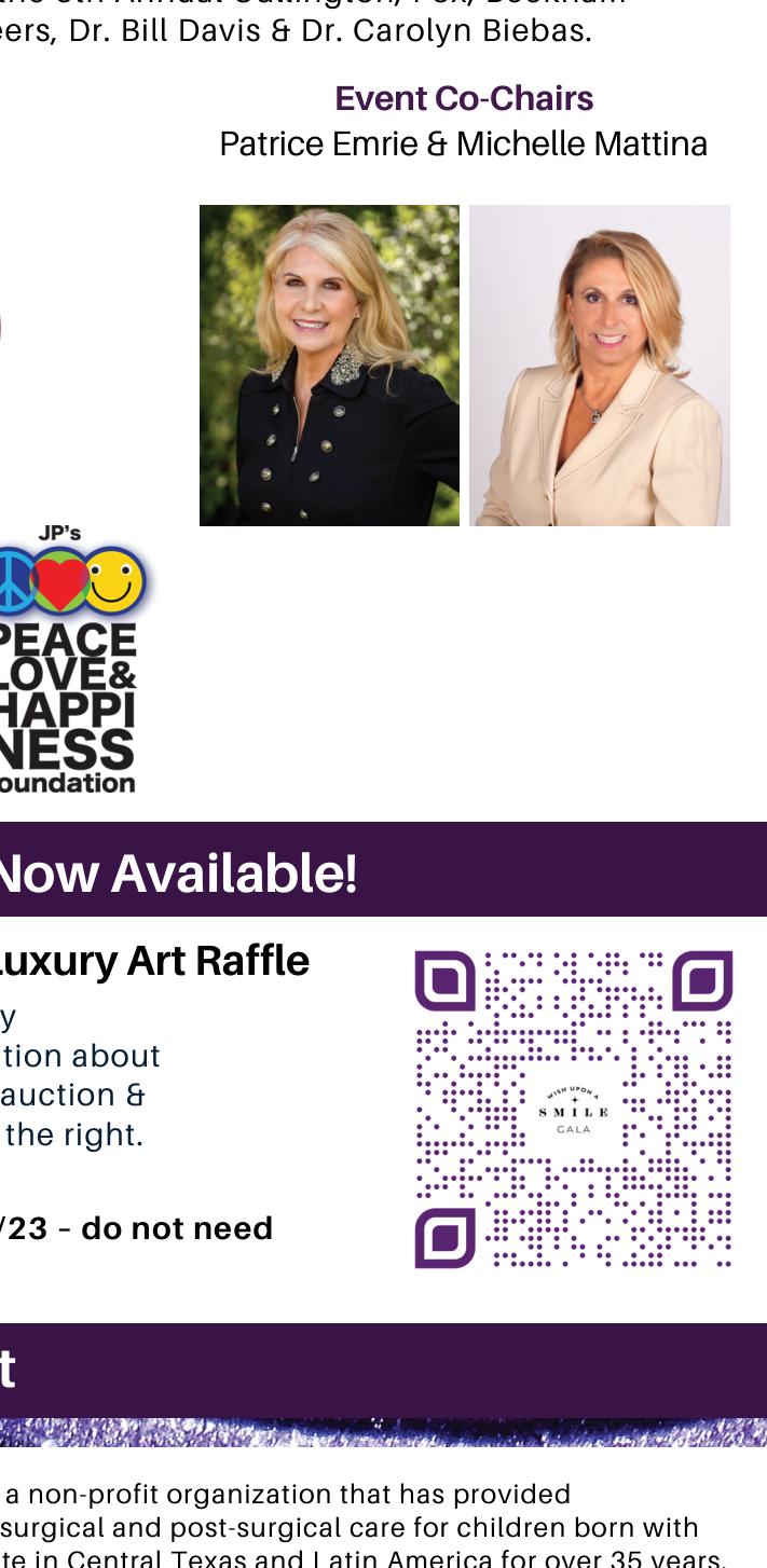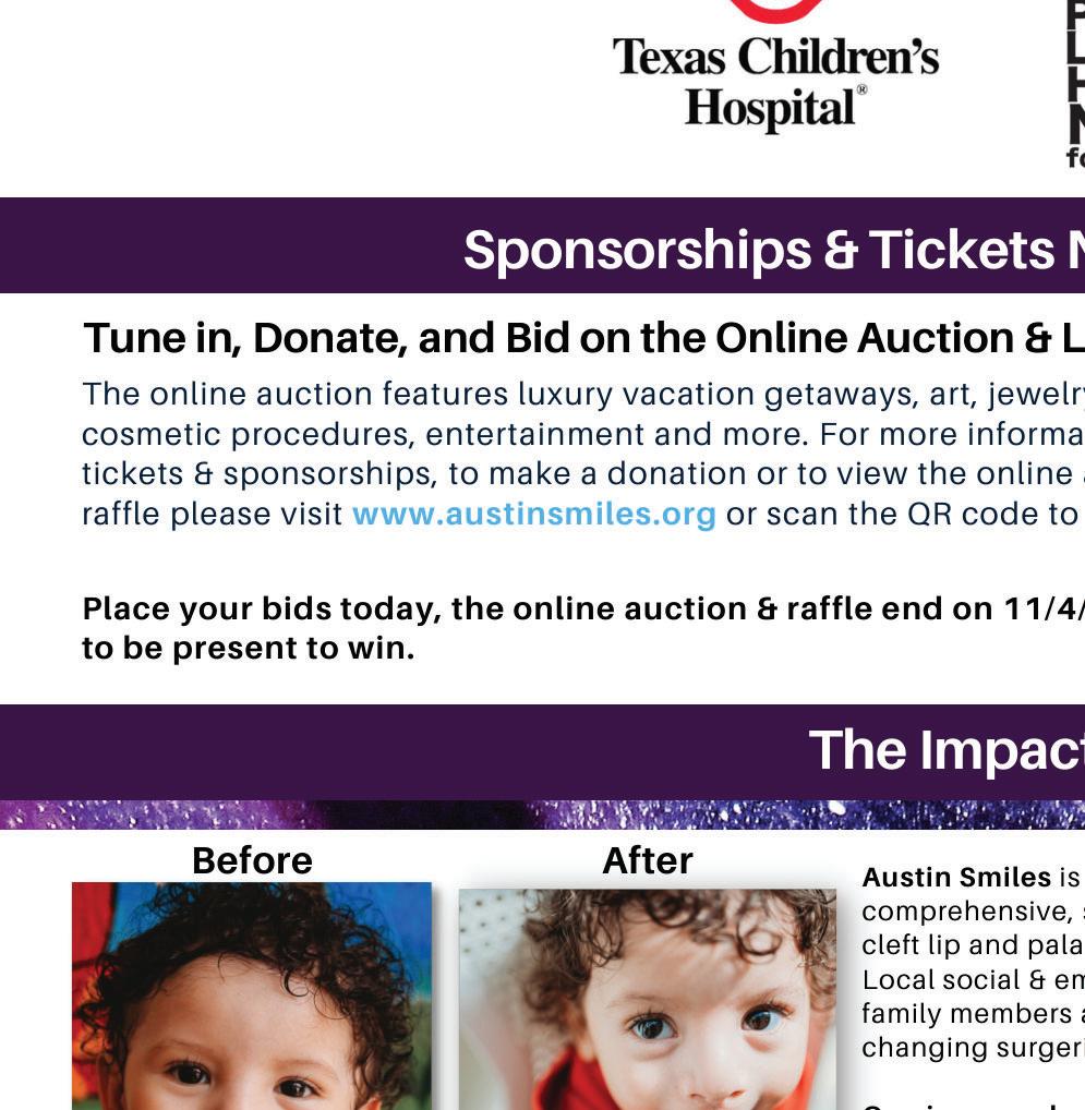 To learn more about the organization and the Gala, visit www.austinsmiles.org. Your involvement paves the way for a brighter future, where every child has access to a happy, healthy and inclusive life.