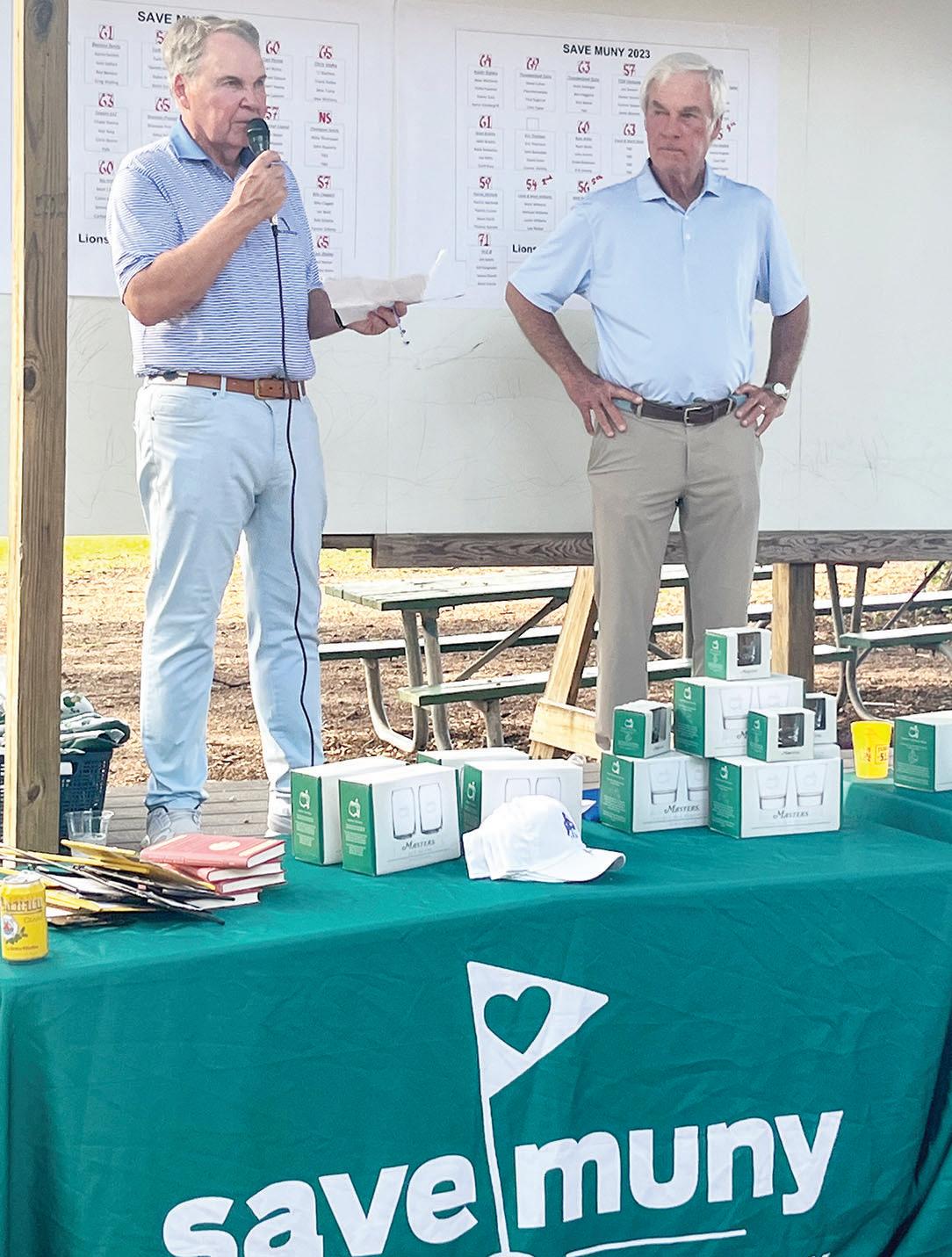 Long-time friends Ben Crenshaw and Scotty Sayers are co-chairs on the Muny Conservancy Board of Directors and were on hand at the after-tournament barbeque. The duo presented tournament awards and thanked attendees for their continued support.