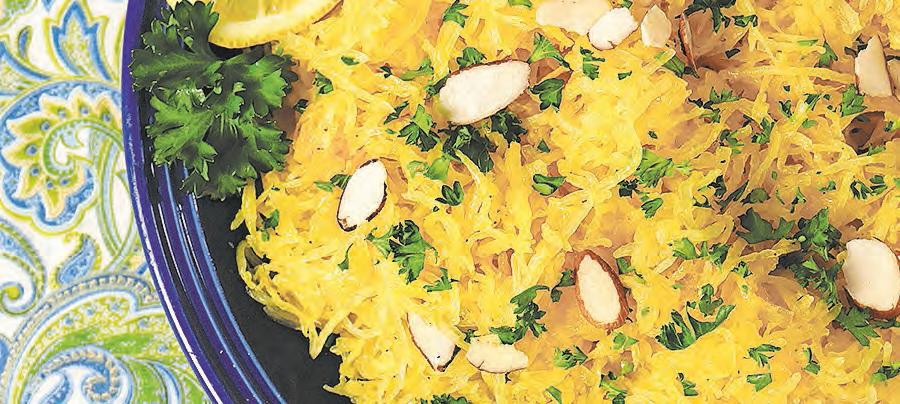 Spaghetti squash is easy, inexpensive and versatile. Stock up when it’s on sale, because it keeps for a month stored in a cool dry place and up to three months in the fridge.