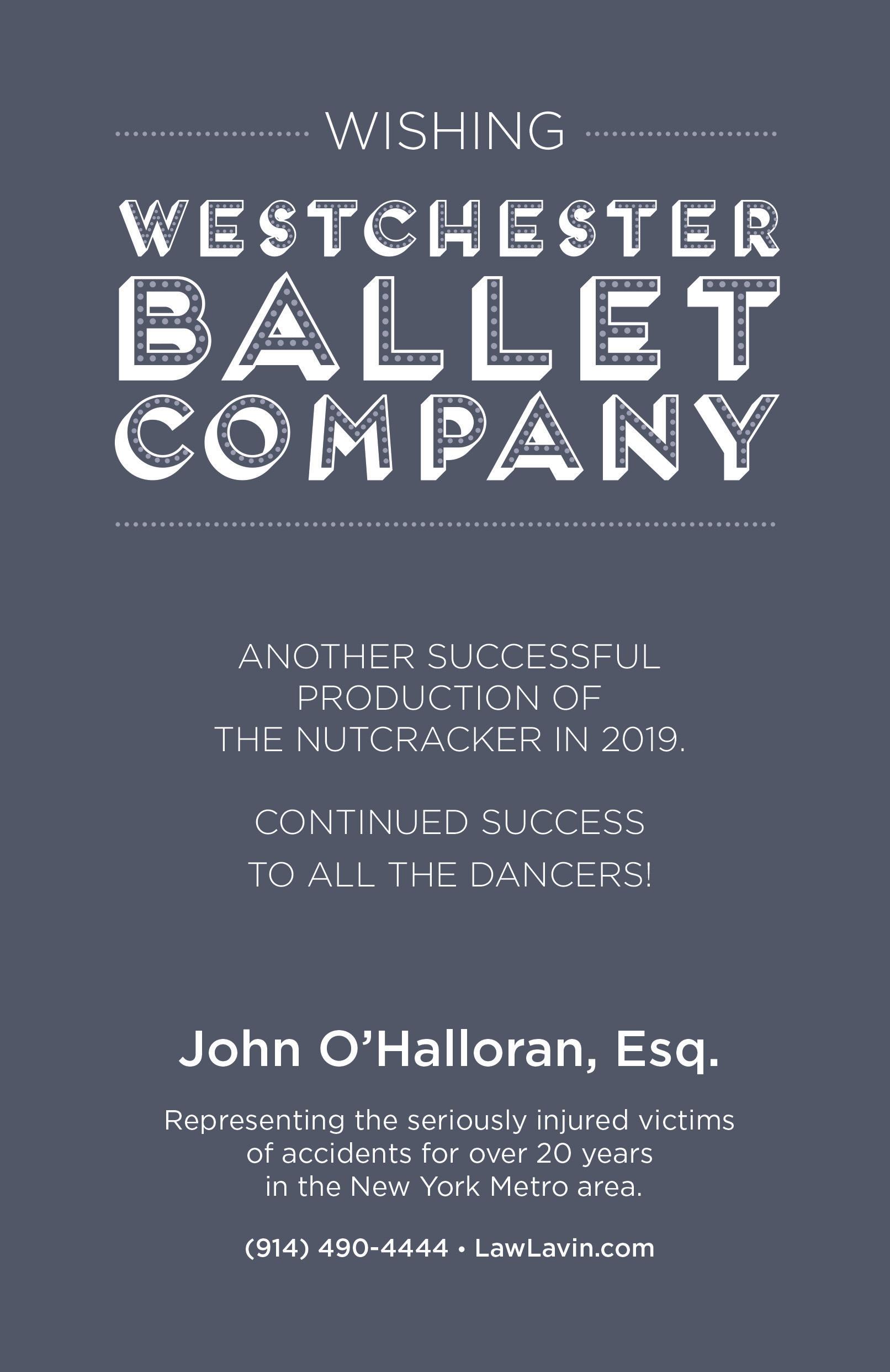 It is my great pleasure to wish you happy holidays and welcome you to the Westchester Ballet Company’s performance of The Nutcracker.