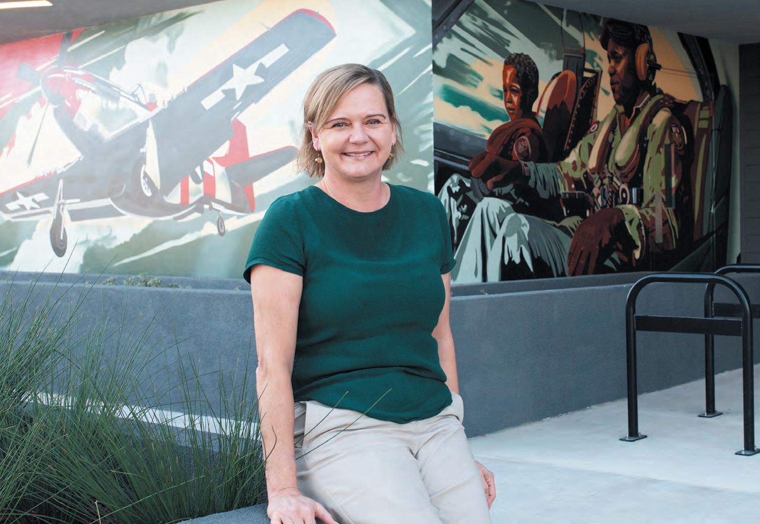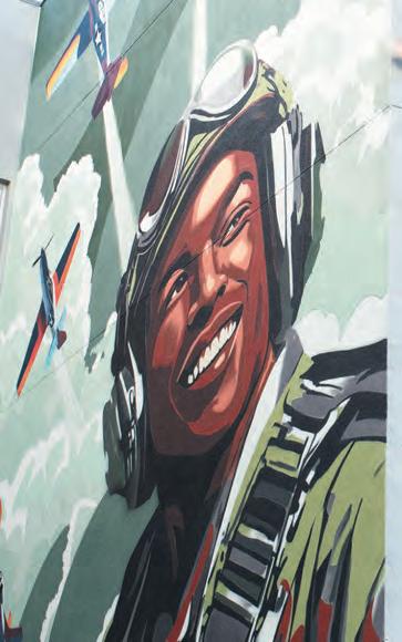 Local artist David Russell created murals depicting the Tuskegee Airmen, integrated throughout the building and visible from the street.