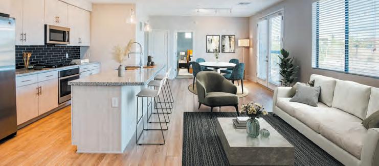 areas, wellness and fitness spaces, onsite laundry, secure bicycle parking, and 78 parking spaces. The all-electric building features solar panels, Energy Star appliances, and EV charging stations, reflecting a commitment to environmental sustainability, as well as affordability.