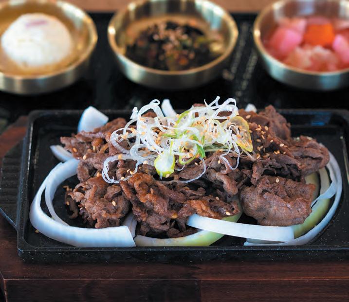 At top: The Kims are excited to be back in Westchester with their newest restaurant. At left and opposite page: A collection of some of the restaurant’s most popular dishes, including Ikura Oroshi, Chicken Katsu and Beef Bulgogi.