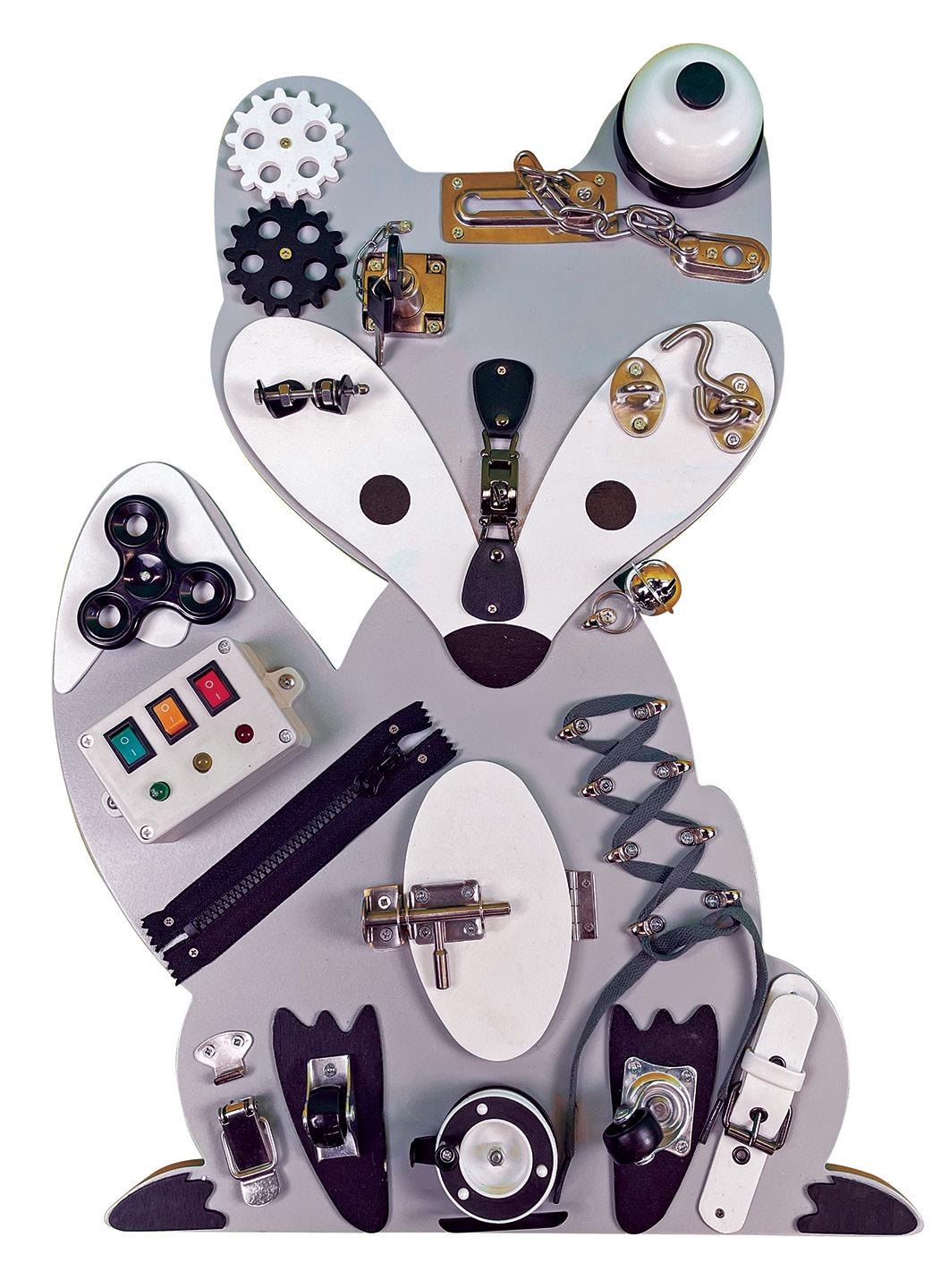 A fun and engaging way for kids to practice their fine motor skills and keep busy. Activities include spinning, rolling and more. Try out the latches, hooks, switches, zippers and shoelaces!