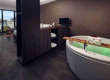 Indulge in luxury and relaxation in our beautiful rooms with King-size bed and private bubble bath. The Spa Superior, 40 m2 in size, offers an oasis of comfort and relaxation. Pamper yourself with unrivaled luxury as you enjoy the bubbling spa and breathtaking view over the city.