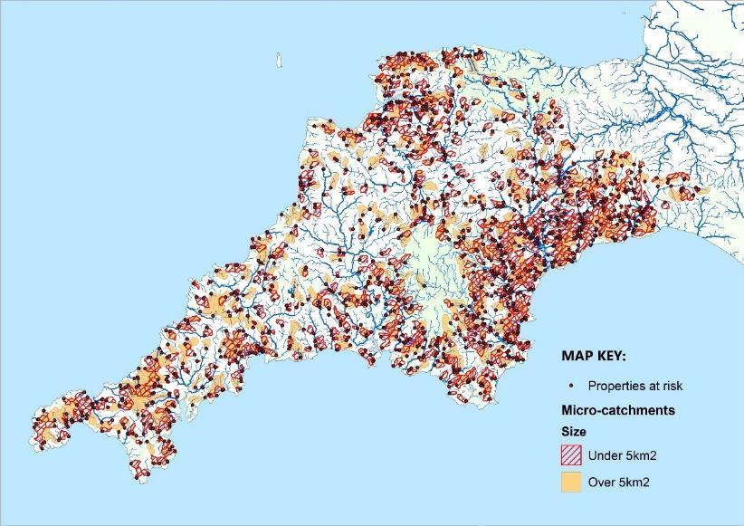 A mapping exercise was carried out to identify all the micro-catchments (5km2 or 10km2)above flood-risk properties in Devon and Cornwall. The idea being that Natural Flood Management (NFM) measures and engagement with the local community weremost likely to be effective at this scale. These micro-catchments were then prioritised according to a number of factors. The catchment described in this report, the Hemyock Stream, is one of those prioritised micro-catchments.