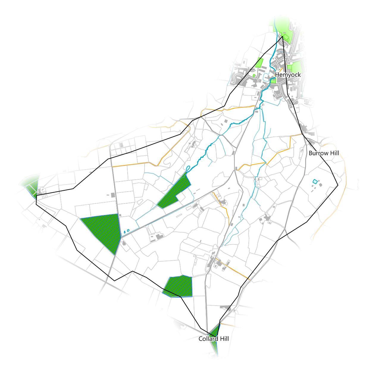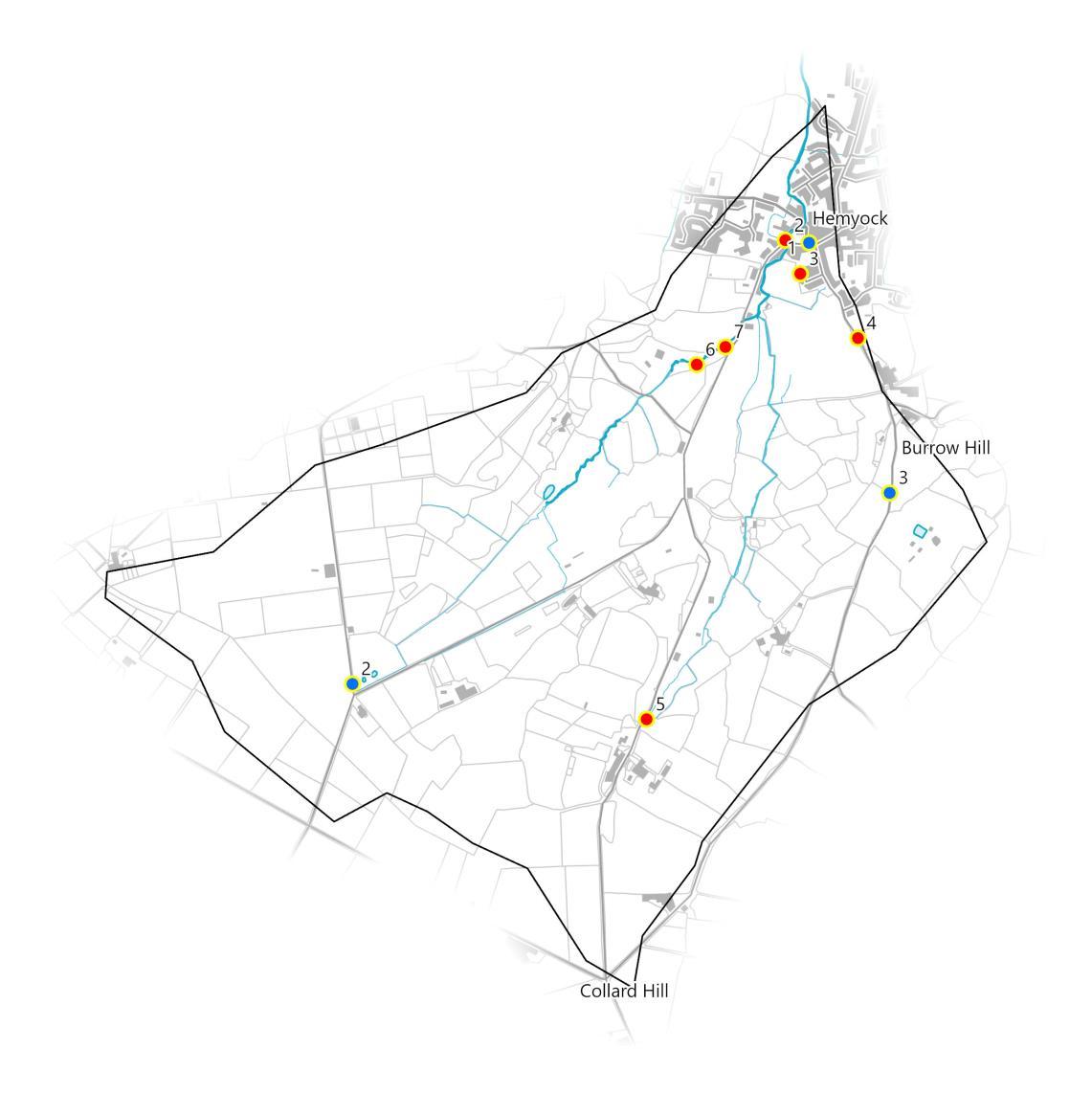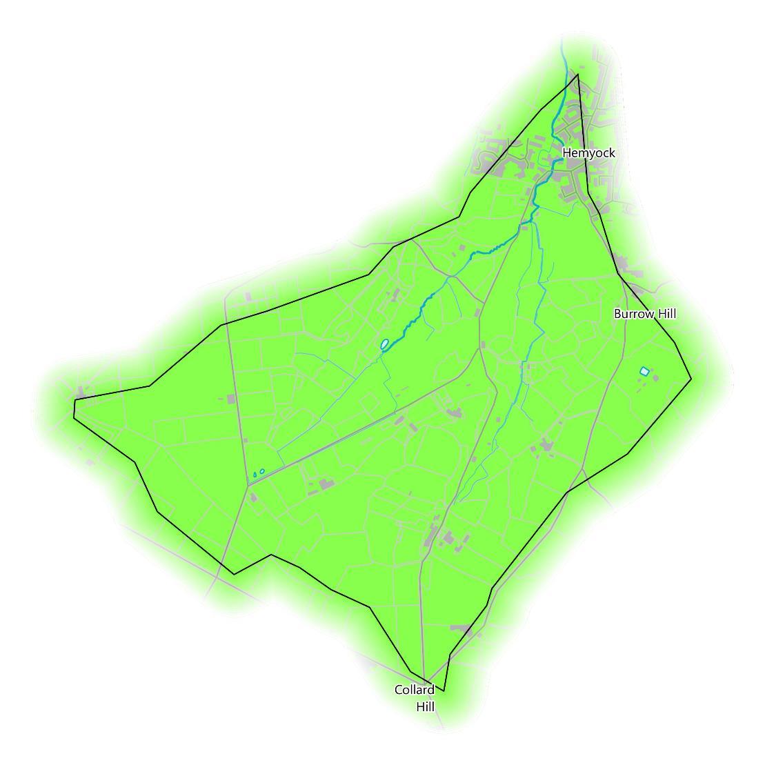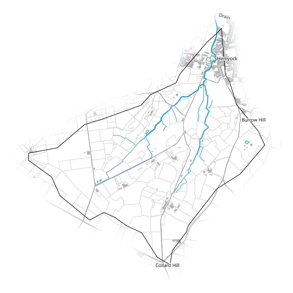 The micro-catchment covers the southwestern urban area of the town of Hemyock as well as several farms. The micro-catchment forms the watershed for the unnamed watercourse that this document will refer to as the Hemyock Stream, which flows northeast through Hemyock where it joins the river Culm outside of the catchment outlet. The total river length present in the catchment is approximately 7.5km. Overall, the micro-catchment falls within the Hemyock County Parish and is administered by Hemyock Town Council.