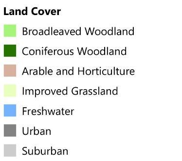 The suburban element is slightly overstated in the CEH data and more improved grassland (grazing), arable and horticulture is present.