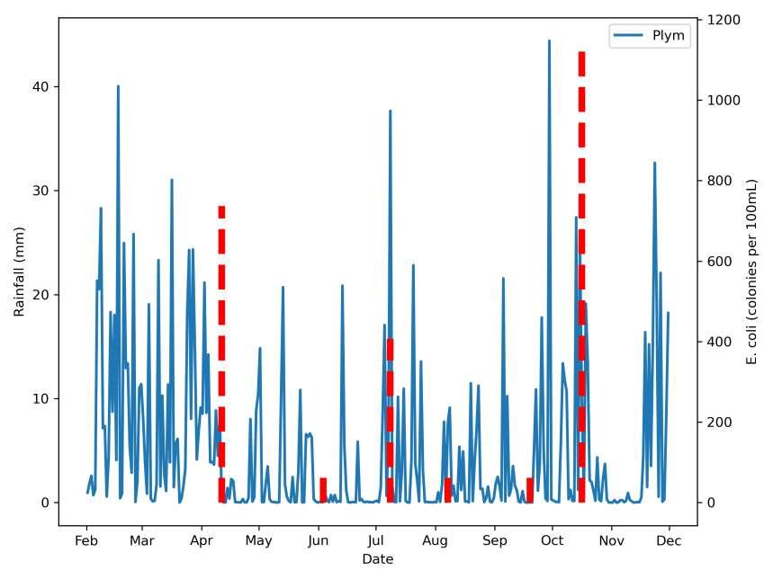 High rainfall always linked to high ISM deposition in Plymouth Sound in 2014, 2016, 2020, 2022, 2023.