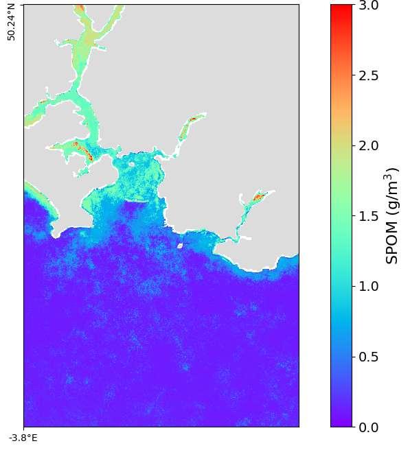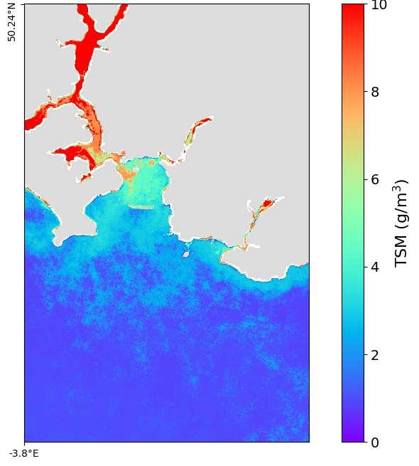 • Generation of Water Quality products. In situ optical data used to calibrate CSIRO ML model provided accurate water quality products for Plymouth Sound, which were used to assess principle sources of TSM from rivers to coast.