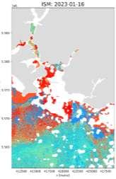 • Particle tracking model based on in situ ADCP and modelled FVCOMS data fields.
