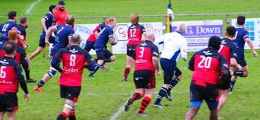 From the kick off, Appleton-Scott charged through the centre tracked by Daragh Mcoughlin, who was just held up short, but Lewis was on hand to pick up the loose ball and cross for his third try. The half was completed with a flowing move by the backs, Samways again breaking the line and offloading to Mcoughlin to score for a half time score of 64-5.