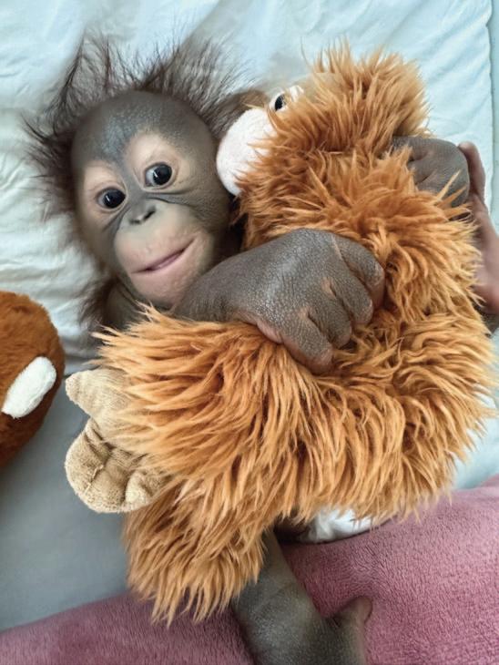 Director of Monkey World Dr Alison Cronin fetched Sibu Jr, a 12-week-old, from Dublin Zoo to be hand reared at the sanctuary in Bovington.