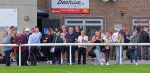 corner. Jordan Scadding produced a couple of good saves as the visitors pressed for an equaliser, while his opposite number Jordi Wilson was at full stretch to deny Hunter a second. Bridport’s defence held firm, and with the clock running down, Owen Peart found Calverley, who crashed an unstoppable right-foot shot past Wilson to spark scenes of utter jubilation. There were shades of Sir Geoff Hurst about the timing of the goal and the finish itself, and Bees’ players and fans celebrated like they had just won the World Cup –and deservedly so.