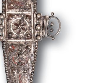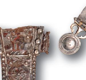 Een van de bijzondere objecten tijdens de expositie: een zilveren dolkschede met gordel uit een waterput bij het castellum Velsen.