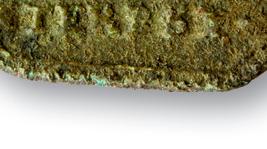 Eén van Jans topvondsten: een multimuntgewicht met vijf blokbeeldenaars. Dit werd nooit eerder in Nederland gevonden. Hier afgebeeld de voor- en achterzijde.