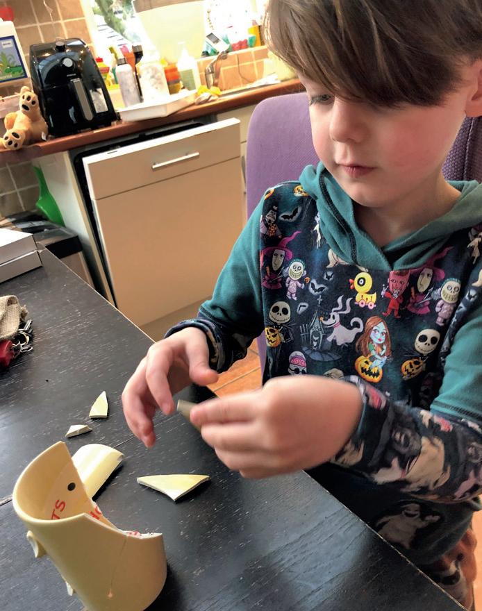 We hebben gebruik gemaakt van materiaal van kringloopwinkel Noppes, waar we ten behoeve van de erfgoededucatie gratis borden en bekers konden krijgen, die we zelf kapot hebben gegooid. Deze activiteit kun je thuis corona-proof ondernemen, in je eigen tijd, terwijl je ouders rustig een kopje koffie kunnen drinken. En als aandenken heb je een prachtig zelf geplakt potje in je raamkozijn staan!