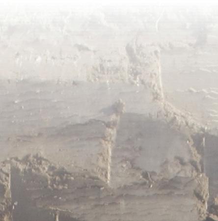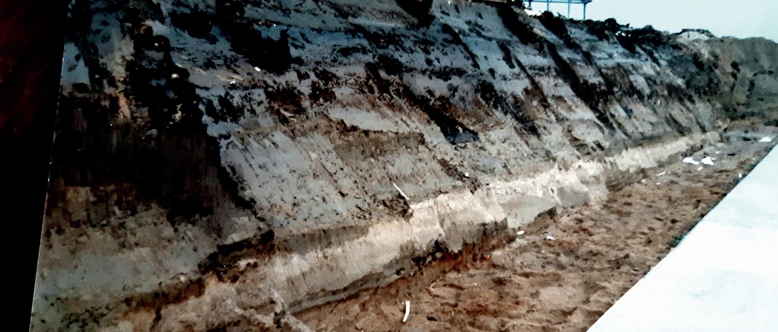 Resultaat van een boring in een dichtslibbend verlaten rivierprofiel, met afwisselende zand- en leemlaag.