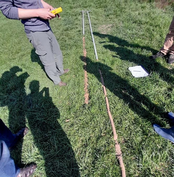 In het AWN Magazine aflevering 2, 2021 (p. 89), heb ik beschreven hoe wij de oude rivierlopen in kaart proberen te brengen. Dit onderzoek gaat door totdat wij alle puzzelstukjes volledig hebben. Bij onze werkzaamheden werden we onlangs geassisteerd door studenten en hun begeleiders van de Rijksuniversiteit Utrecht. In het kader van een practicum veldwerk hebben zij een zestal boringen gezet met behulp van de zogenoemde Van der Staay-boor. Deze boor bestaat uit twee in elkaar geschoven buizen. De binnenste buis komt tijdens het boren omhoog en zuigt zo als het ware een kolom grond omhoog. Met deze boor kan tot een diepte van zeven meter worden gegaan. Of de met de Van der Staay-boor genomen monsters echt geschikt zijn zullen we nog moeten beoordelen.