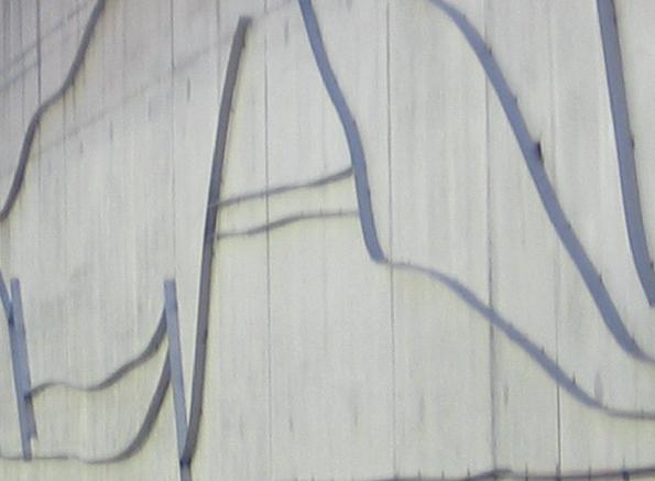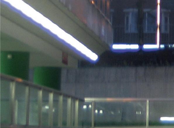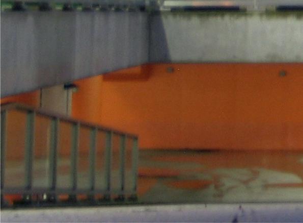 De burcht Sevenaer in 2012 beleefbaar gemaakt. Zichtlijn op de verbeelding van de burchttoren boven de hellingbaan van de parkeerkelder. Rechts op de betonwand de profieltekening in metaal van de dubbele gracht, zoals die zich achter de wand bevindt.