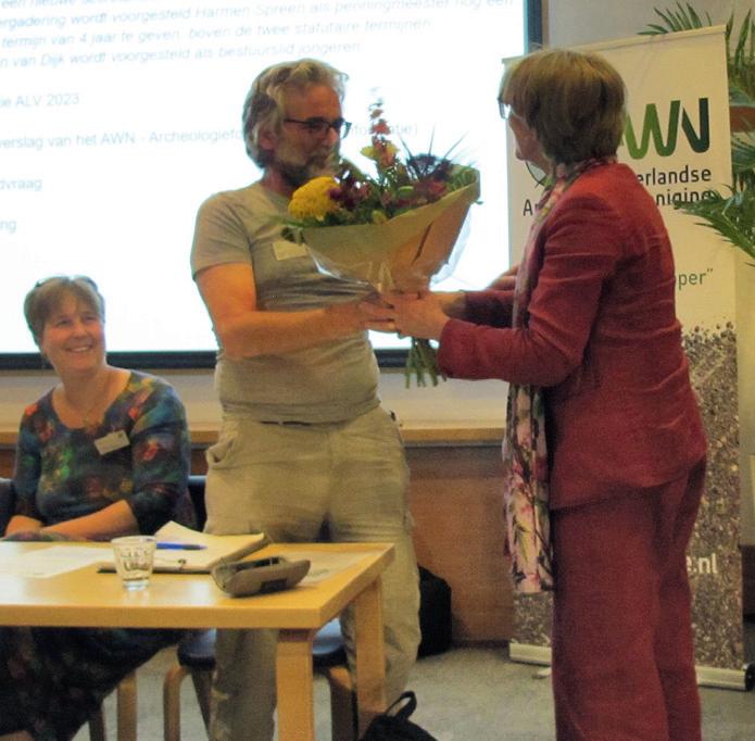 Het is een traditie geworden tijdens de ALV erepenningen uit te reiken aan leden die zich bijzonder verdienstelijk hebben gemaakt voor de AWN. Deze keer viel de eer te beurt aan Joan van Pelt en Marcel Niekus. Joan is in 1993 lid geworden van AWN afdeling 11 Lek- en Merwestreek en heeft decennialang het penningmeesterschap van deze afdeling vervuld. Ze is actief als redactielid van het blad GrondigBekeken en, niet verwonderlijk gezien haar onderwijsachtergrond, zet ze zich in voor jongeren. Marcel Niekus kreeg de erepenning uitgereikt vanwege zijn inzet op het gebied van steentijdarcheologie. Hij werkte daarbij altijd nauw samen met amateurarcheologen. Door middel van publicaties, zoals het samen met Evert van Ginkel geschreven boek Neanderthalers in Noord-Nederland. Leven aan de rand van de oerwereld maakte hij een breed publiek deelgenoot van zijn onderzoek. Hij is medeoprichter van Stone: Steentijd Onderzoek Nederland.