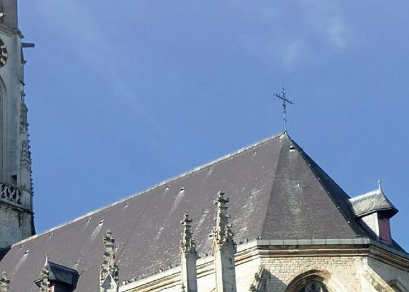 Geheel rechts Details van de helderrode rechthoekjes (in het schip en het transept) die fel afsteken tegen hun omgeving. Deze worden als individuele begravingen geïnterpreteerd.
