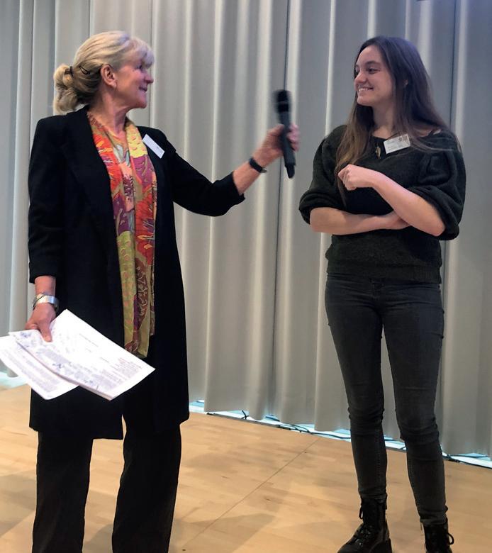 Lisa van Luling geeft toelichting over de Werkgroep Jongeren. Links voorzitter Hiske Land.