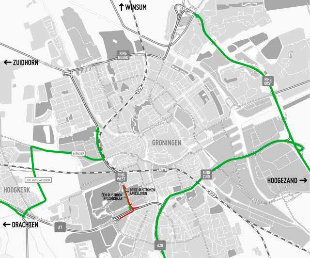 Verkeer vanuit Groningen rich ting Hoogkerk maakt dan nog steeds gebruik van afrit West poort (34a).