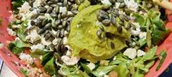 Doe er de tomaat en avocado in stukjes erbij en roer dit goed door de quinoa. Verkruimel de geitenkaas erop en doe de pompoenpitten erbij.