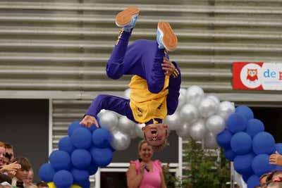 ren en toegestroomde ouders mochten maken, om aan het eind van de ronde onder luid gejoel te eindigen met een nat pak.
