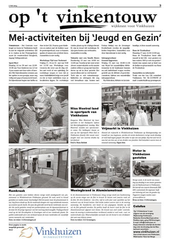 Colofon ‘Op ‘t Vinkentouw’ is een uitgave van de vereniging Wijkoverleg Vinkhuizen. Redactie: Emma Bel,Kopij adres: Postbus 2507, 9704 CM Groningen. E-mail: info@vinkhuizen.nl. Kopij inleveren uiterlijk de donder dag vóór de dinsdag dat de Westerkrant verschijnt.