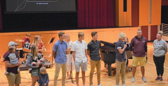 Leading praise and worship at the Homecoming Chapel is Junior Cade Tiedeman. Music is an integral part of praise and worship, and also a time when students develop gifts of music and leadership. Read more about Western’s new Worship Arts and Leadership class in the Snapshot portion of this issue.