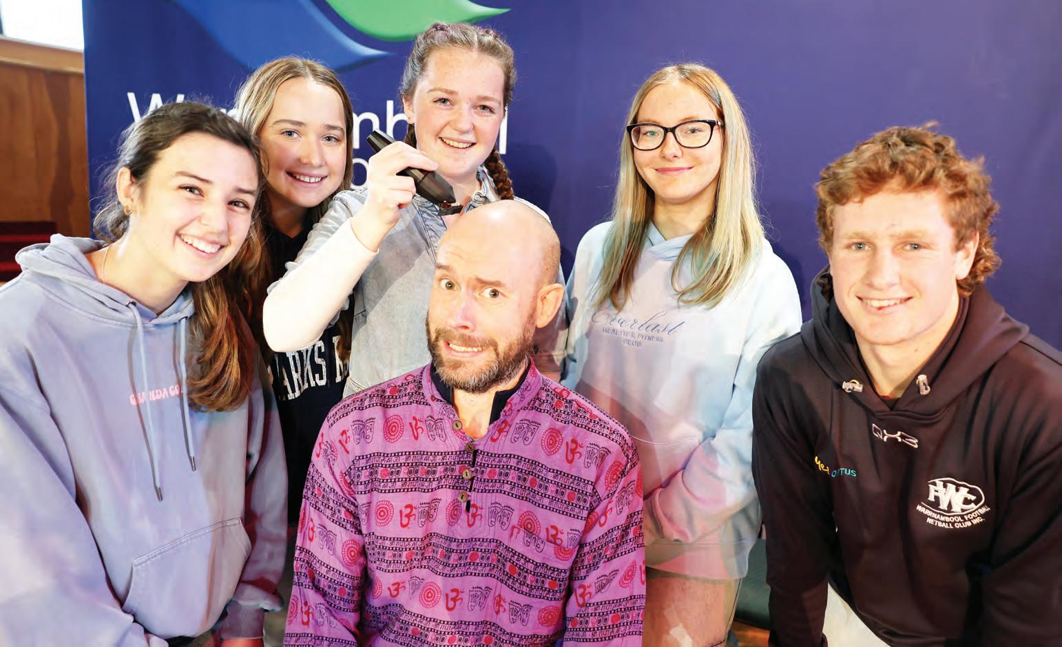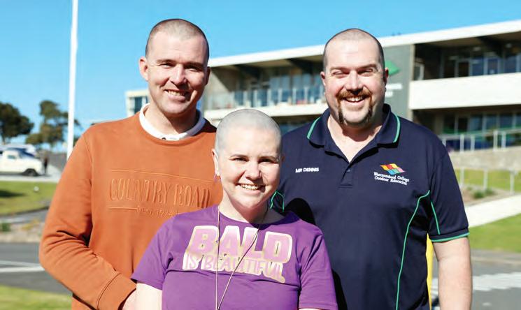There’ll be some extra chilly days ahead for a group of staff and students at Warrnambool College who shaved their heads for charity earlier this week –including principal David Clift (centre) who braved the clippers, cheered on by college captains Nyasha Iervasi, Mia Mills, Zoe Borthwick, Chelsea Redmond and Hayden McGovern. 2024D For the full story and more photos turn to page 5.
