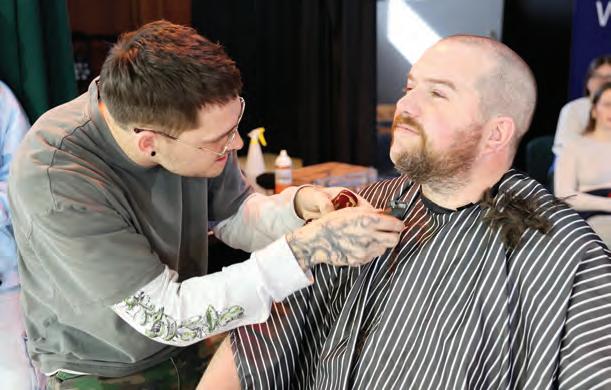 Barber Zak Welsford performs his magic on Phil Dennis. 2024D