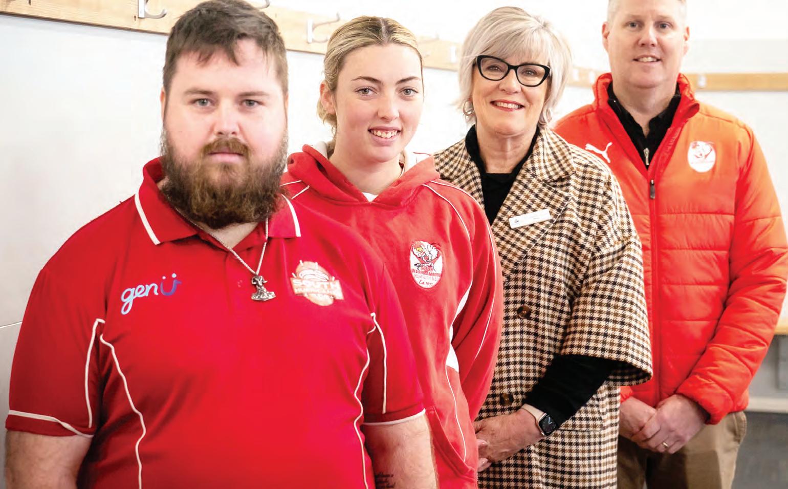 Riley Malone, Charlotte Meade, Debbie Arnott and John Ross in the new clubrooms. 2023E