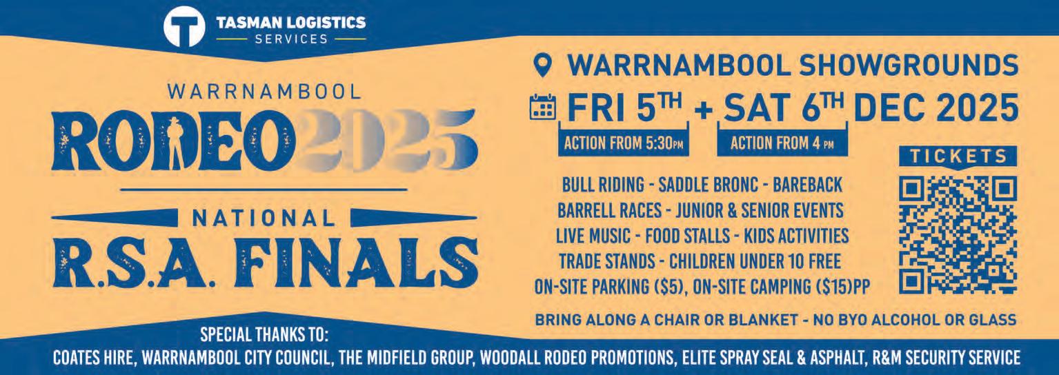 For all editorial copy, photographs and news tips, email news@warrnamboolweekly.com.au or telephone 5593 1888. Layout of each edition begins on a Tuesday morning and the earlier copy is submitted, or arrangements made for publication, the more likely material can be published in that week’s edition. All copy should be lodged by midday Wednesday unless prior arrangements have been made.