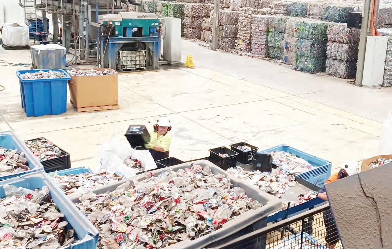 These cans are bailed before being shipped overseas to be reprocessed into aluminium