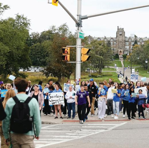Protestors gathered in front of University College at noon before they marched around campus, passing by Stevenson Hall where the o ce of Western president Alan Shepard is located.