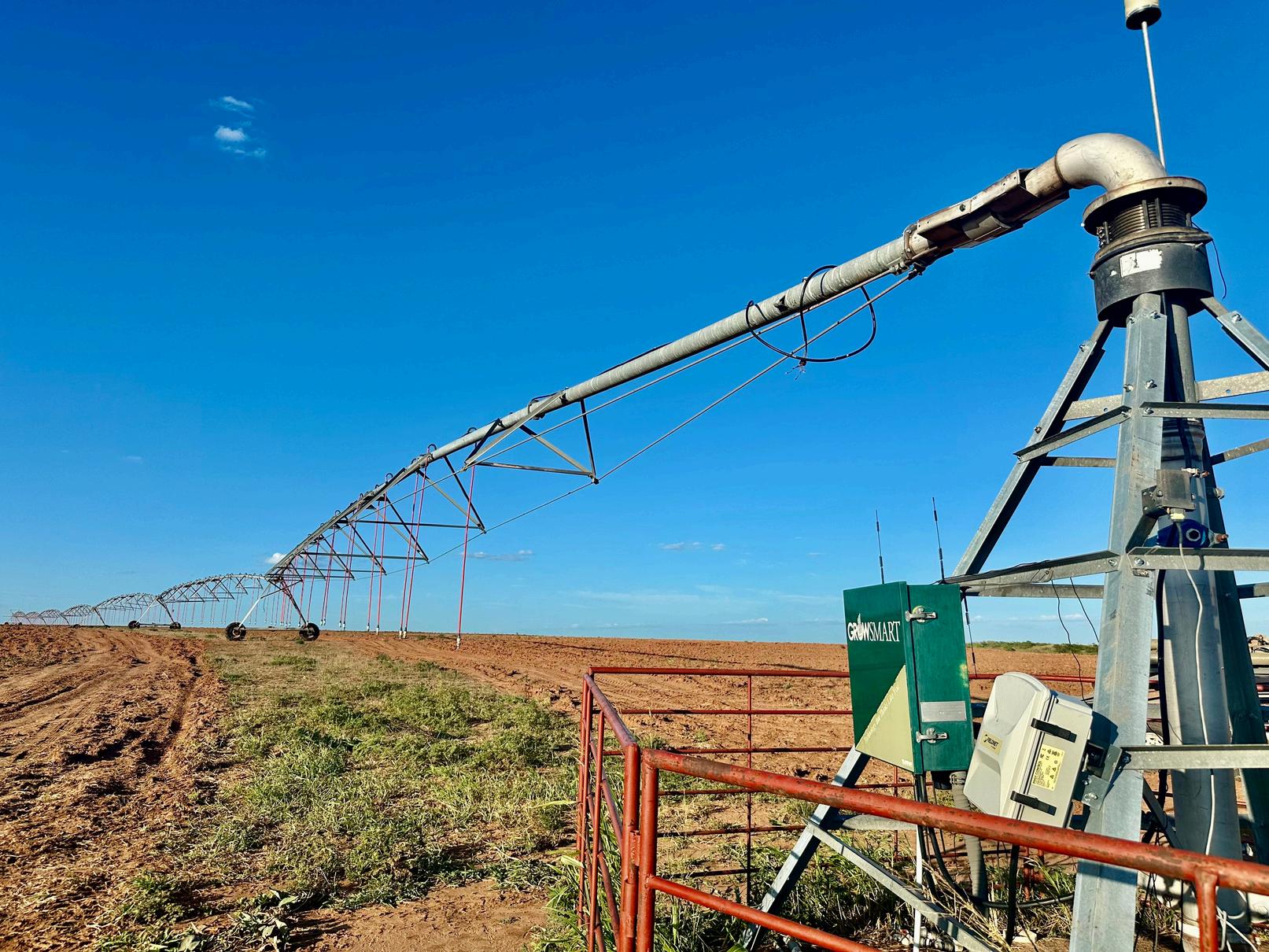 • 7-tower Grow Smart pivot, nozzled for 300 gpm. The well tied to this pivot pumps approximately 300 gpm at a depth of 65 feet.
