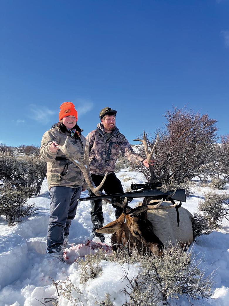 their newborn son. Despite limited time and tough conditions, the couple leaned on their support system and hunted hard throughout a brutal winter in pursuit of Stormy’s first bull elk. After months of effort, persistence, and help from family,