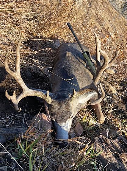 I was trying to field judge him, making sure he was at least a 4x4, but my binoculars were fogging up. It’s amazing how everything tries to go wrong in the moment. My wife got a good look at him and fore they run off.” I got out and shot him at 270 side he was on was very steep, and I had to hold him in my lap and slide down the hill just to get