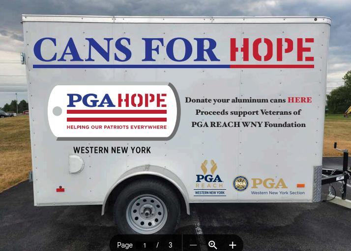 Thank you to everyone who has dropped off their cans or bottles to the Cans for HOPE trailer! Your efforts have helped raise money for the PGA REACH Western NY Foundation. $1,100 has been raised Year to Date. This initiative will continue annually as we can continue to support PGA HOPE, so look for us in 2025!