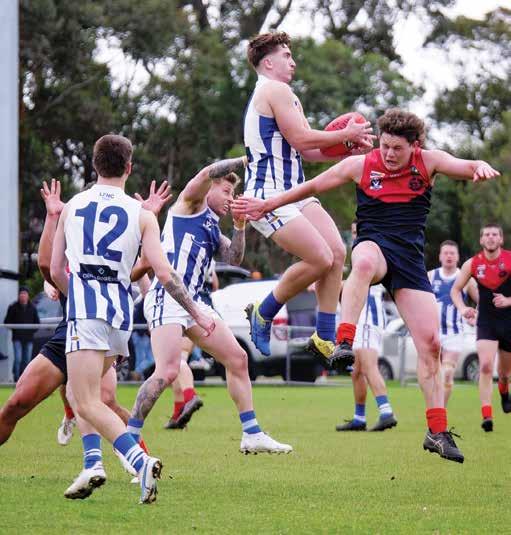 Redlegs run out of legs: After a close contest all day, Frankston YCW got the better of Mt Eliza by ten points. Picture: Craig Barrett Division One here we come: Mornington Bulldogs have secured promotion after taking out the 2023 Division Two Grand Final. Picture: Alan Dillon