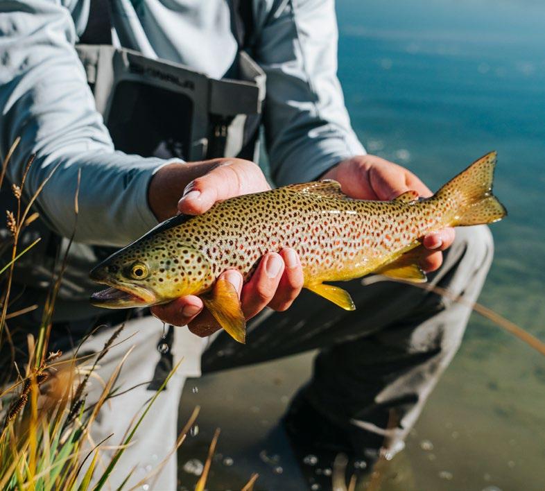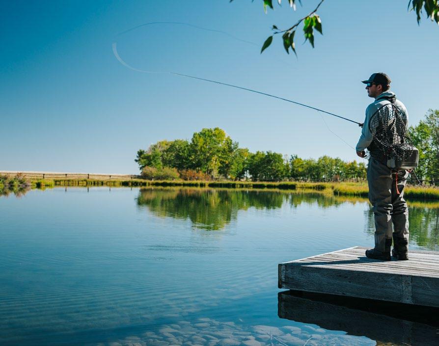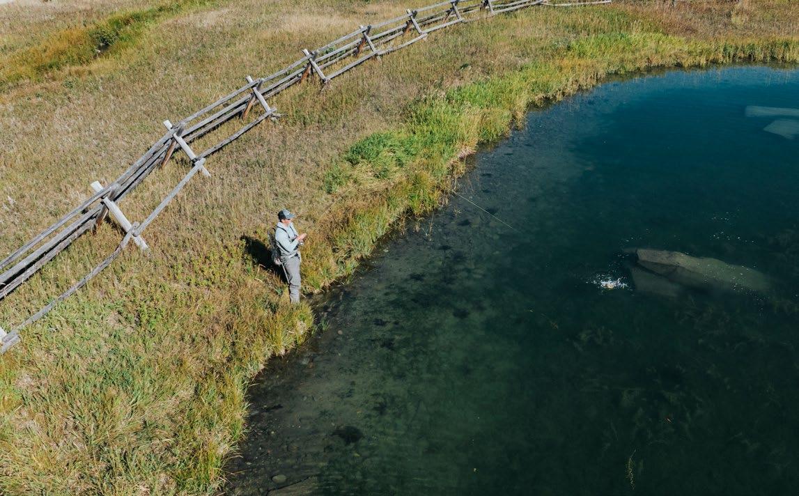 Just steps outside the front door of the main lodge sits a trout pond full of large Brown Trout. This pond is fed by an offshoot of Sweet Grass Creek and is 3-8 ft deep with crystal clear water. Damselfly dry flies and nymphs are the most exciting way to fish this pond, and it is typical to see every fish you are casting to. An angler can expect to stalk rising fish or simply “sight fish” large cruising Brown Trout around the edges of the pond. The pond is a great alternative if the creek becomes off-color after heavy rain.