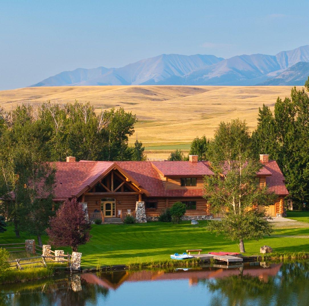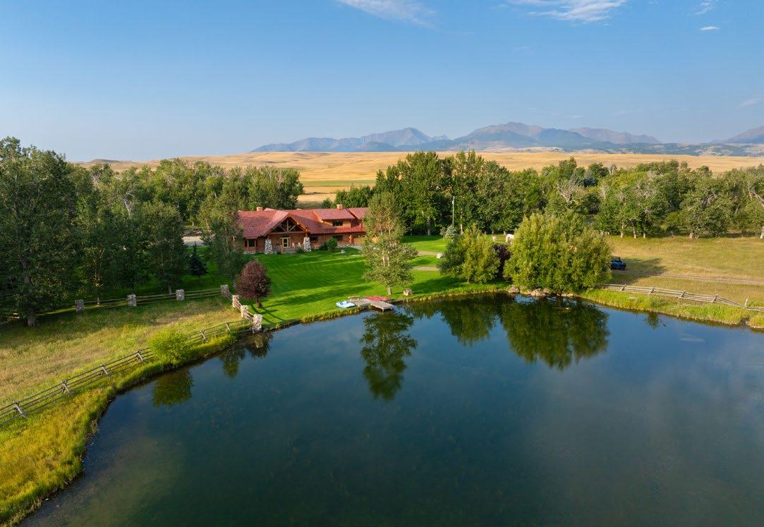 • A picturesque Montana mountain log lodge, encompassing an impressive 5,237± sq ft of grand living space on the banks of Sweet Grass Creek with the Crazy Mountains as the private backdrop and a private stocked pond