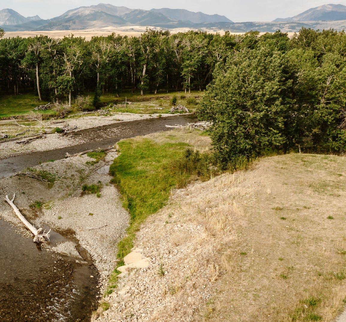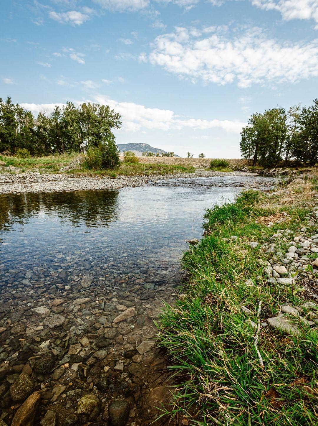 The section of Sweet Grass Creek on the ranch is characterized by sweeping corners and classic riffle-pool structures in a quintessential Montana cottonwood river-bottom. Access is abundant from the river-bottom trails and dirt roads on the ranch. Finding good water on the creek is not difficult as there are productive holes around every bend. The clean mountain water causes the deep holding pools to take on a turquoise hue, giving away the best spots.